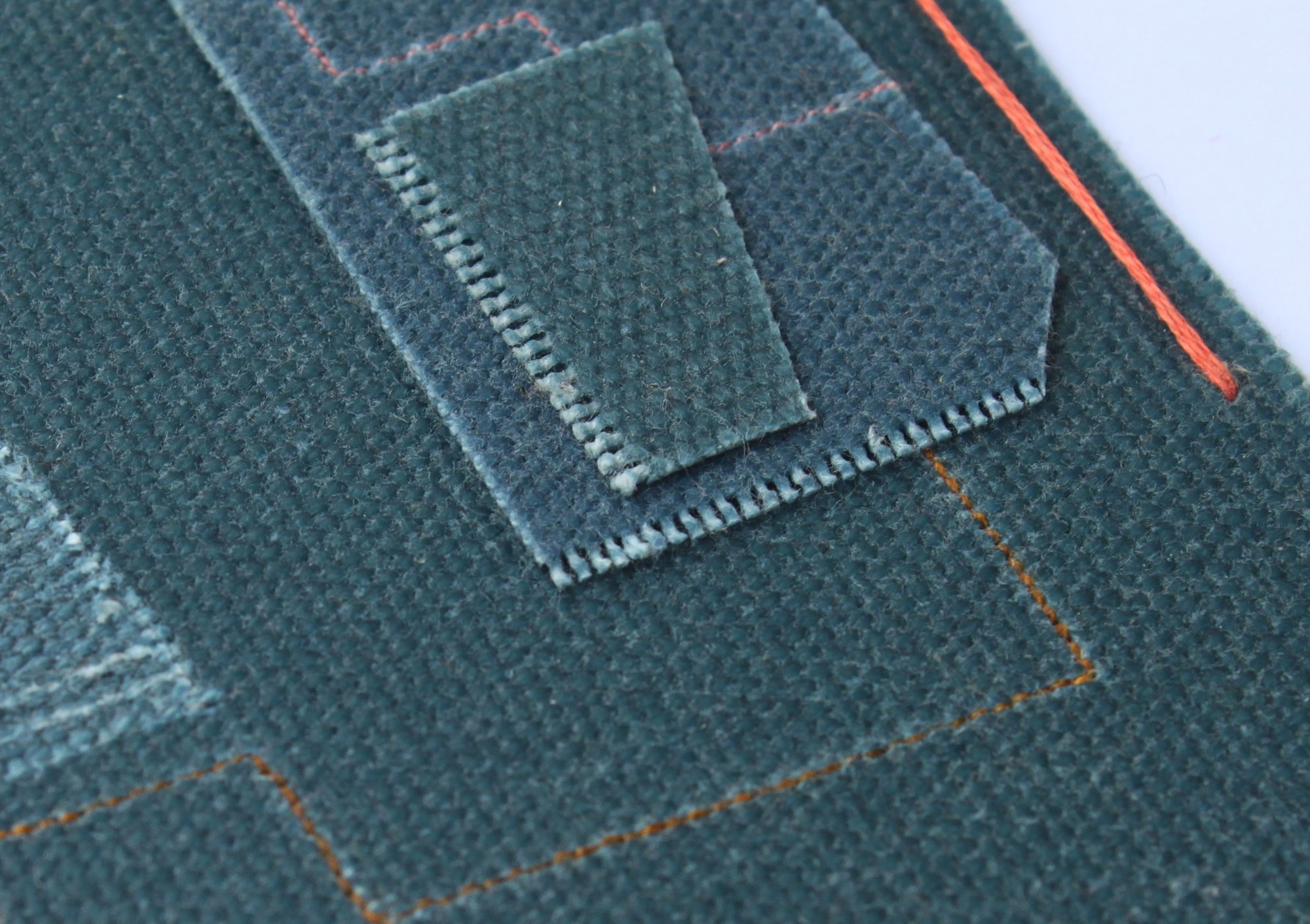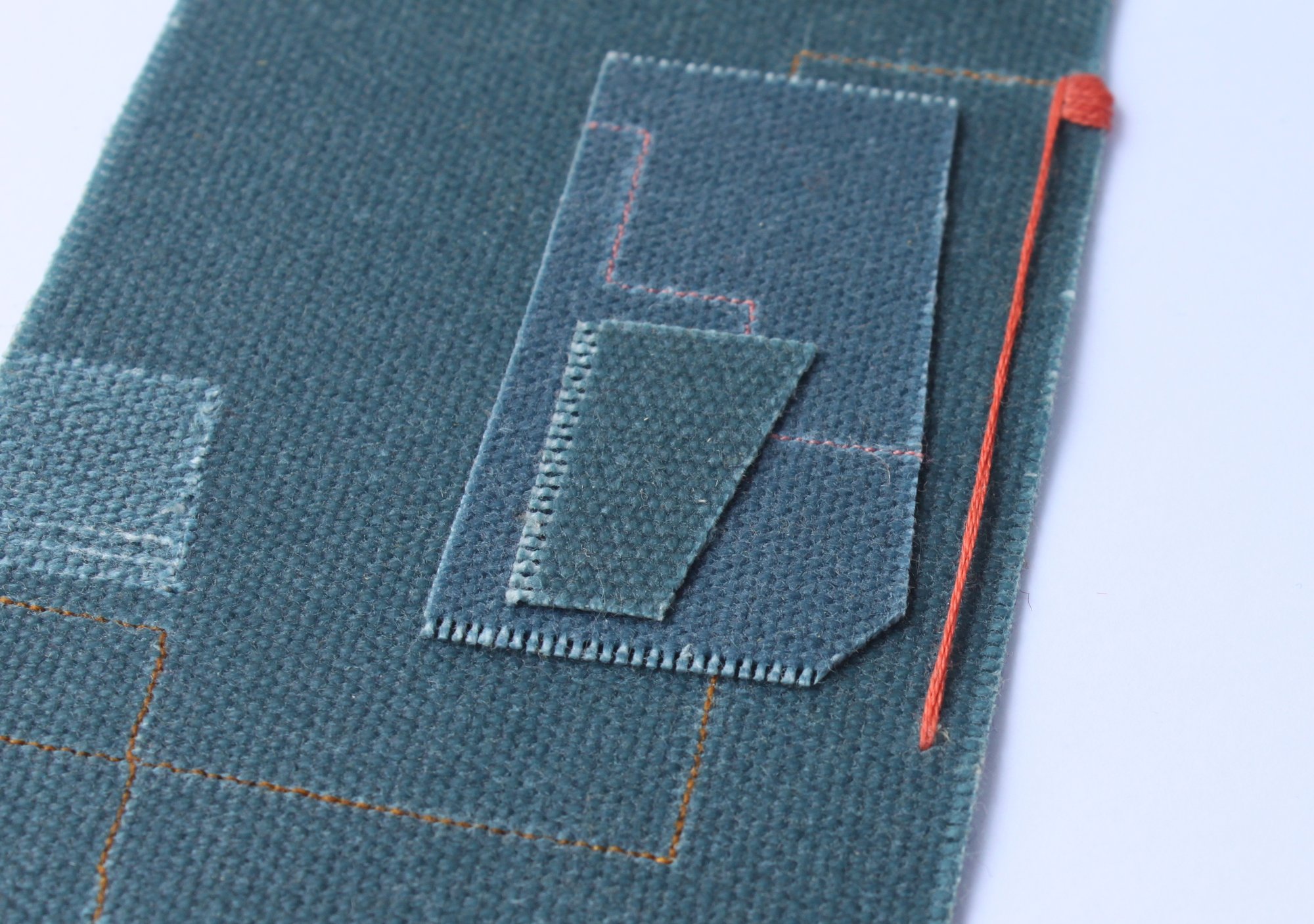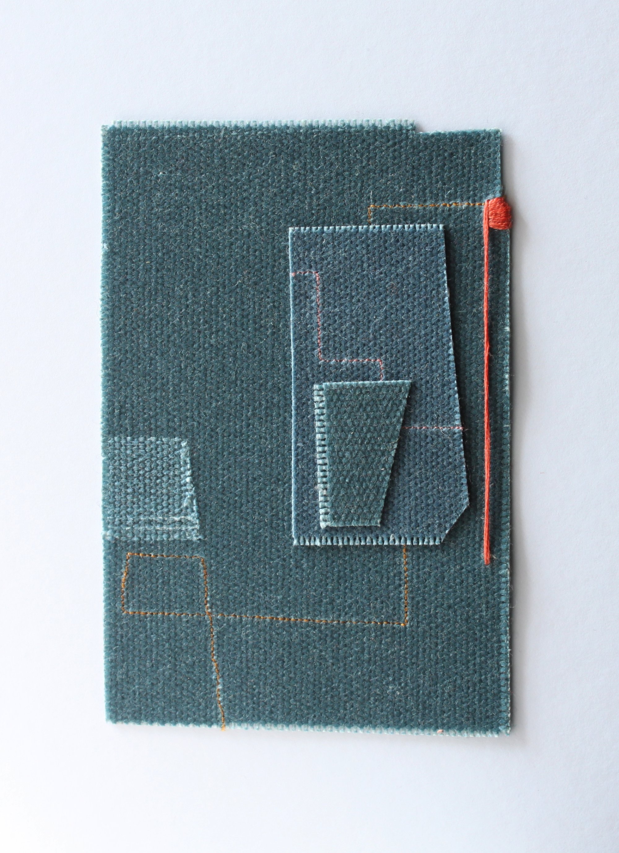 A unique and one off abstract textile collage made with cut, scored and stitched waxed canvas offcuts.